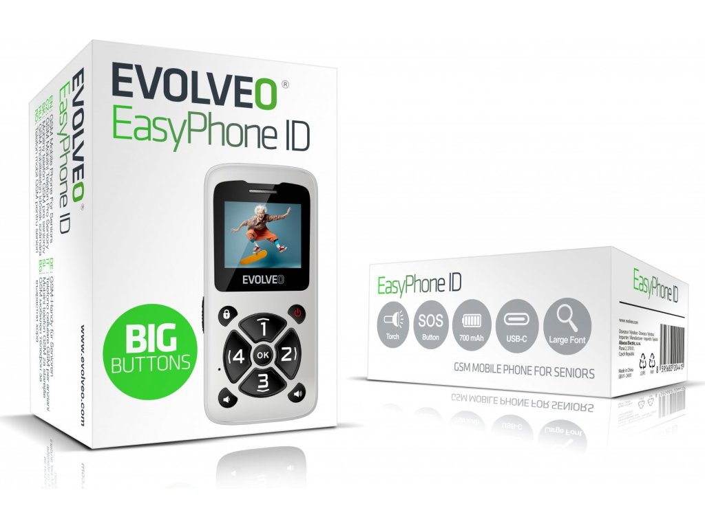 • EVOLVEO EasyPhone ID, mobilní telefon pro seniory, bílá (PartNo EP-400-IDW)