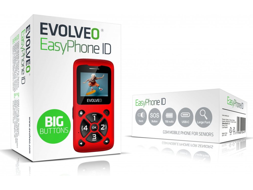 • EVOLVEO EasyPhone ID, mobilní telefon pro seniory, červená (PartNo EP-400-IDR)