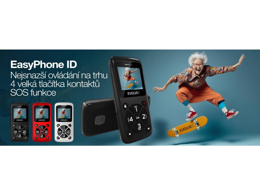 • EVOLVEO EasyPhone ID, mobilní telefon pro seniory, černá (PartNo EP-400-IDB )