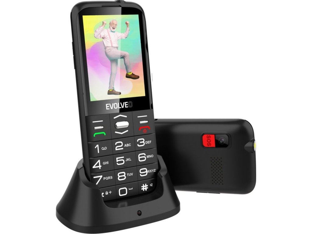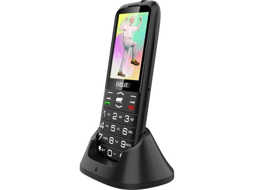 EVOLVEO EasyPhone XO, mobilní telefon pro seniory s nabíjecím stojánkem (černá barva)
