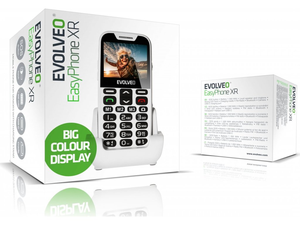 EVOLVEO EasyPhone XR, mobilní telefon pro seniory s nabíjecím stojánkem, bílá