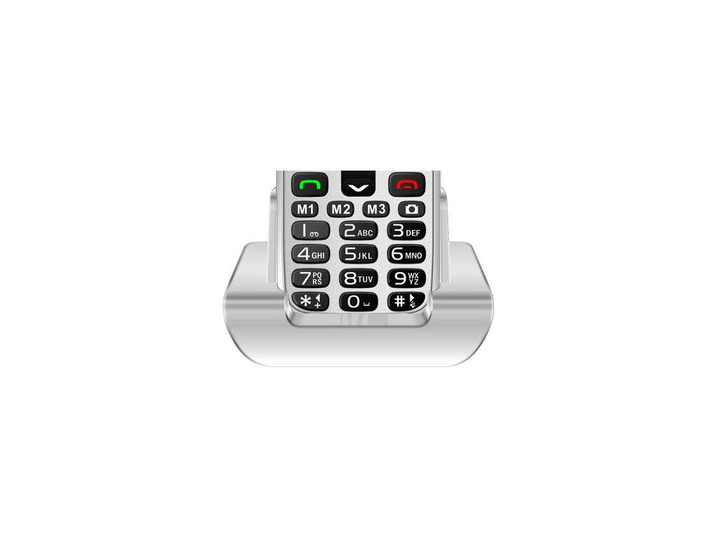 Telefon je dodáván s praktickým nabíjecím stojánkem, do kterého stačí telefon zasunout a nabíjení baterie se spustí automaticky, což usnadňuje a zpříjemňuje každodenní používání. Díky výdrži baterie až 8 dnů je telefon stále připraven k použití, aniž by uživatel musel často hledat zásuvku pro nabíjení