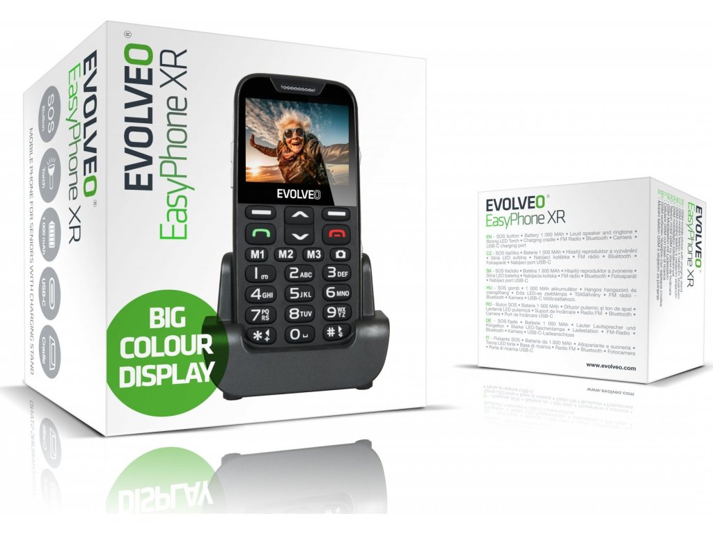 EVOLVEO EasyPhone XR, mobilní telefon pro seniory s nabíjecím stojánkem, černá