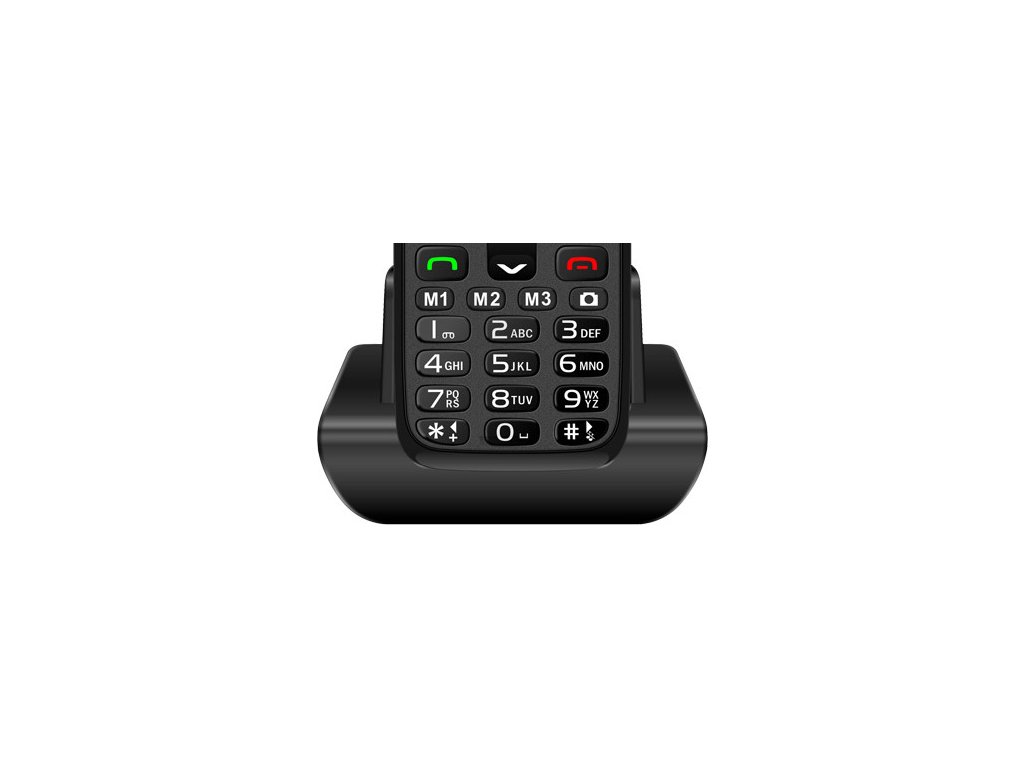 Telefon je dodáván s praktickým nabíjecím stojánkem, do kterého stačí telefon zasunout a nabíjení baterie se spustí automaticky, což usnadňuje a zpříjemňuje každodenní používání. Díky výdrži baterie až 8 dnů je telefon stále připraven k použití, aniž by uživatel musel často hledat zásuvku pro nabíjení