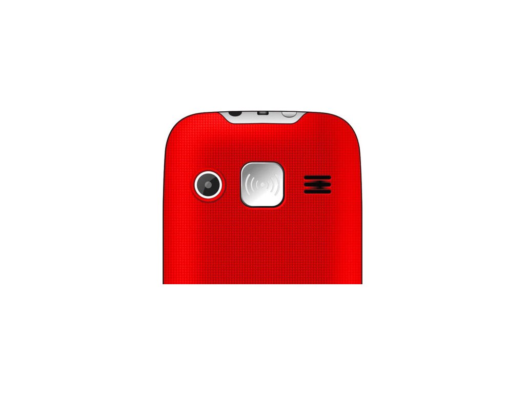 Na zadní straně telefonu se nachází výrazné SOS tlačítko, po jehož stisknutí telefon začne automaticky vytáčet předvolená čísla a odešle na ně nouzovou zprávu, což poskytuje uživatelům v případě nouze rychlou a spolehlivou cestu k pomoci.