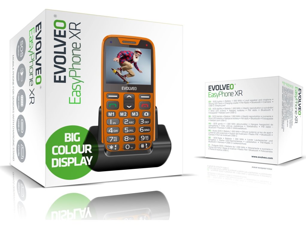 Ovládání mobilního telefonu EVOLVEO EasyPhone XR bylo maximálně zjednodušeno, aby vyhovovalo potřebám seniorů a dětí. Velká čísla a písmena jsou výborně čitelná na velkém barevném 2.3" TFT displeji, což zajišťuje snadnou navigaci a čitelnost informací. Jednotlivá tlačítka klávesnice jsou oddělena, což usnadňuje psaní SMS zpráv a zadávání telefonních čísel. Pro ještě větší pohodlí při používání telefonu jsou k dispozici 3 vyhrazená tlačítka na přední straně telefonu, která umožňují rychlý přístup k důležitým funkcím, jako je fotoaparát.