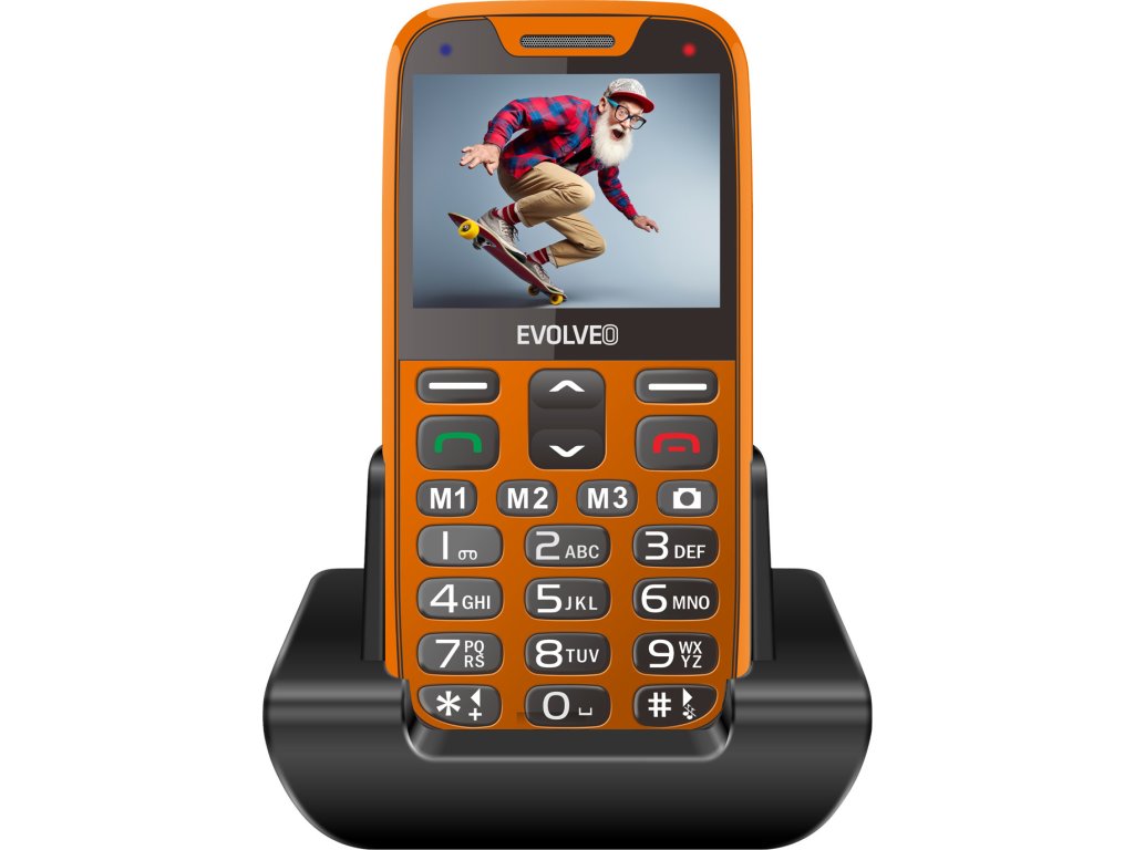 EVOLVEO EasyPhone XR, mobilní telefon pro seniory s nabíjecím stojánkem, oranžový