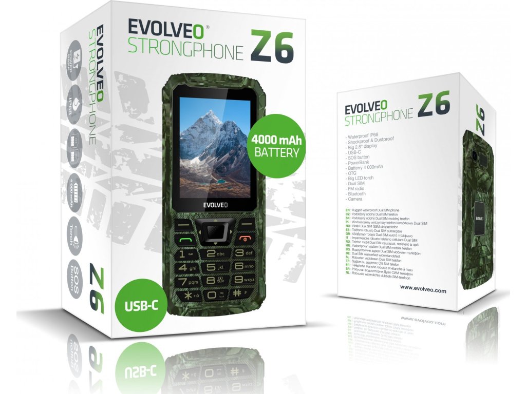EVOLVEO StrongPhone Z6, vodotěsný odolný Dual SIM telefon, lovecká kamufláž