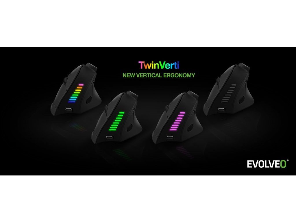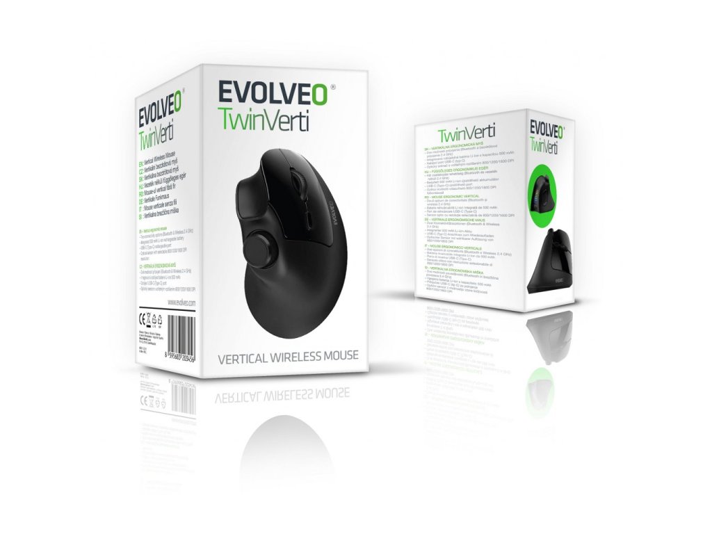 EVOLVEO TwinVerti, vertikální tichá ergonomická myš, 2.4GHz+Bluetooth, černá