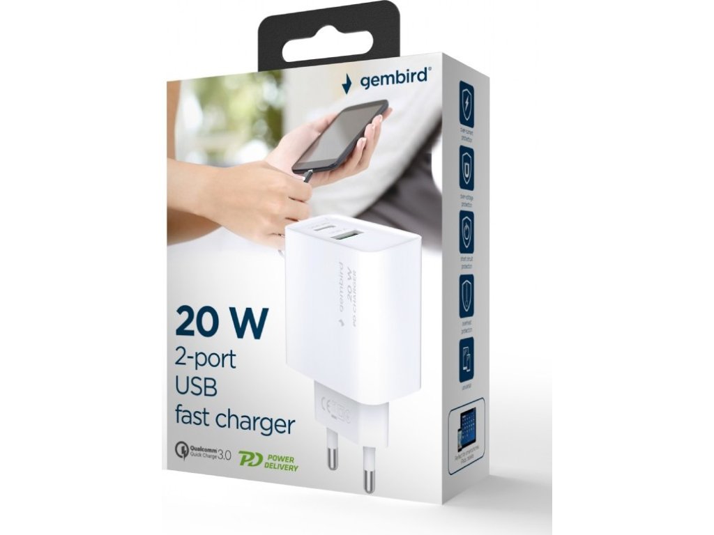 GEMBIRD PD nabíječka USB-A USB C 20W bilá
