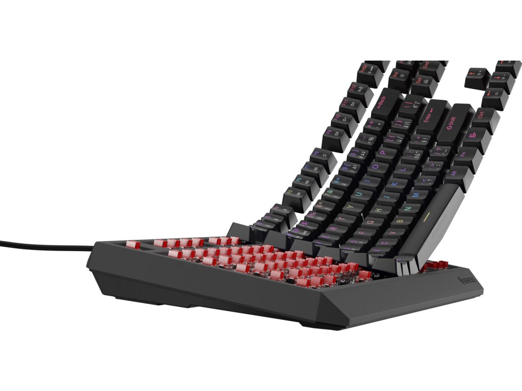 Náhoda? U Genesis Thor 230 TKL není nic náhodné. Kromě výše zmíněného vybavení vám tento model nabídne řadu řešení, která vám hraní ještě více zpříjemní. Speciální kanál pro položení opleteného kabelu v kterémkoli ze 3 směrů, dvojité sklopné nožičky pro snadné nastavení náklonu ve 2 úrovních, funkce umožňující aktivaci funkčních kláves bez použití "FN" - to je jen malá část.