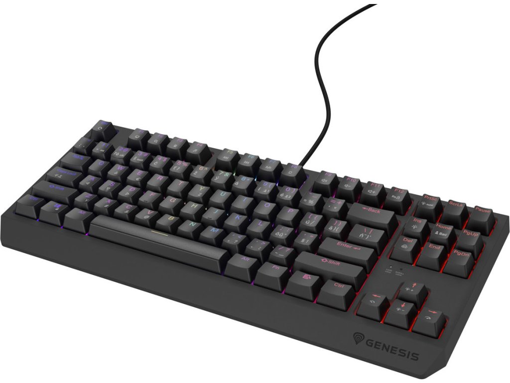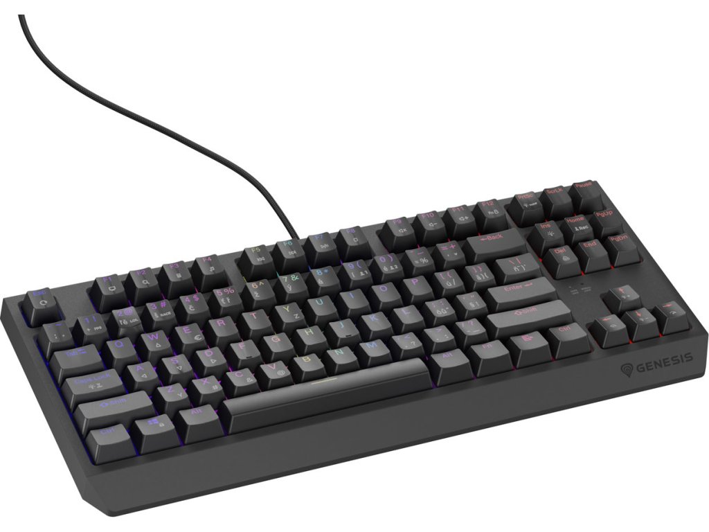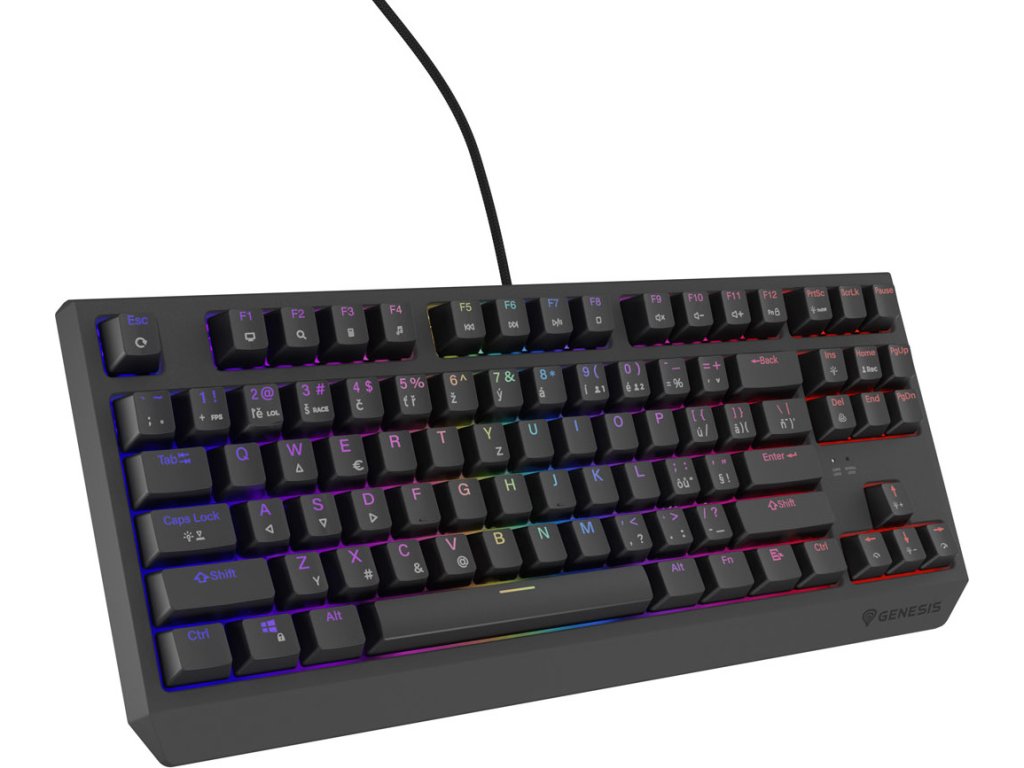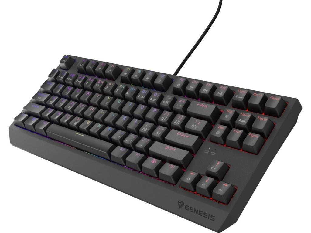 Čitelné. Přesně takové jsou klávesy na klávesnici Genesis Thor 230 TKL. Při jejich navrhování jsme se zaměřili nejen na jejich zpracování, odolnost a materiál příjemný na dotek, ale také na čitelnost laserem vyřezaných doplňkových znaků. Od nynějška jsou ještě čitelnější a umožňují pohodlnější práci s plným, přizpůsobitelným podsvícením každé klávesy zvlášť.