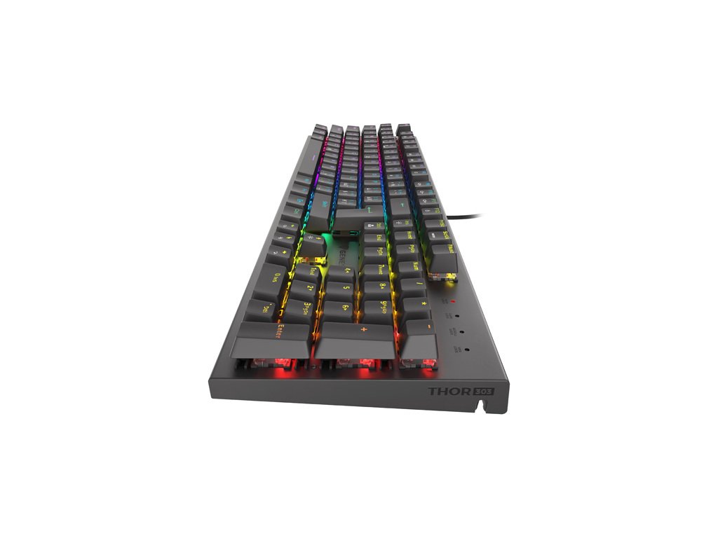 Genesis THOR 303 je mechanická herní klávesnice s výměnnými spínači Outemu Red s extrémně rychlou odezvou a životností až 50 milionů kliknutí. Odolné hliníkové šasi v kombinaci s plnohodnotným RGB podsvícením včetně PRISMO efektu zaručí odolnost konstrukce a efektní vzhled během každé herní relace.