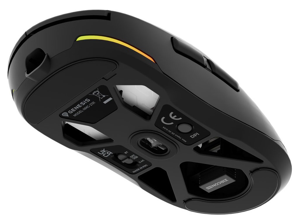 Výhodou nízké hmotnosti zařízení je větší stabilita při zvedání a mnohem rychlejší reakce. GENESIS Zircon 660 je jednou z nejlehčích bezdrátových myší. Její hmotnosti (59 gramů) jsme dosáhli díky speciálně navržené kostře, promyšlenému výběru materiálů a výřezům přítomným na její spodní straně. To vše proto, aby bylo hraní pohodlnější.