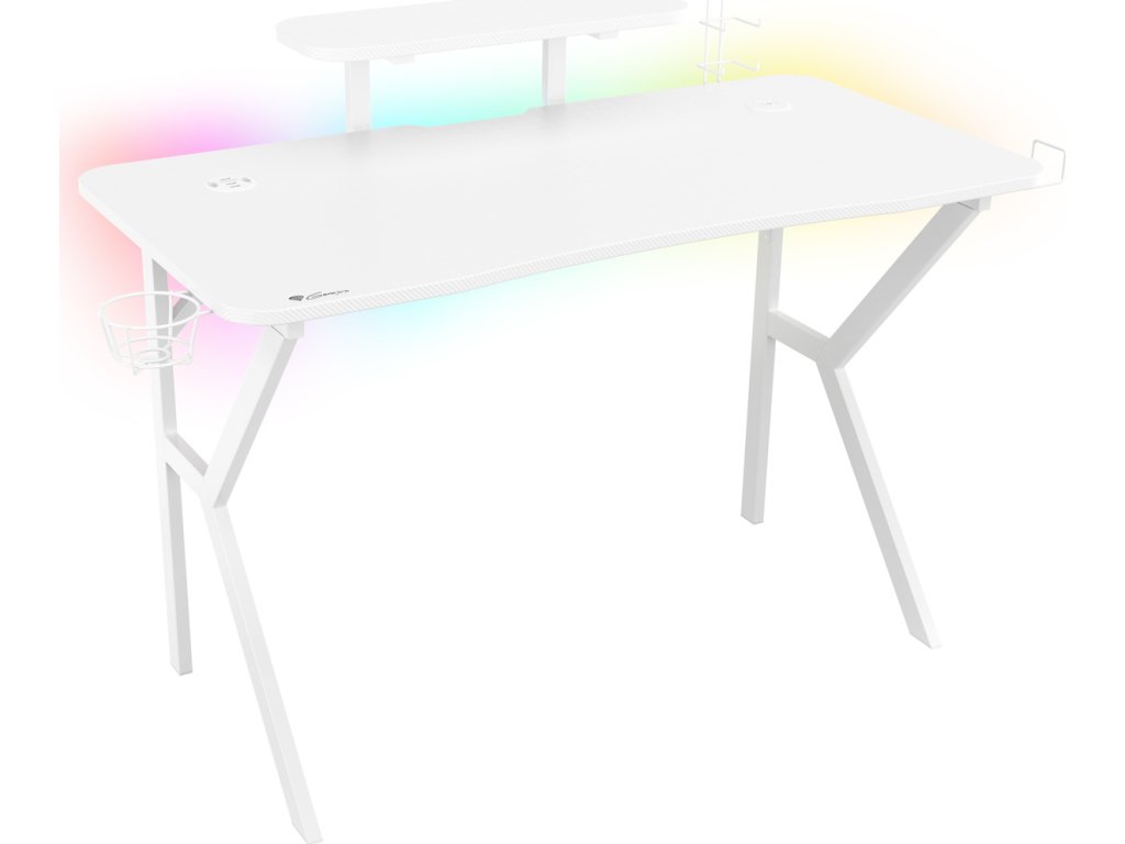 Genesis herní stůl Holm 320, RGB podsvícení, bílý, 120x60cm, 3xUSB 3.0, bezdrátová nabíječka