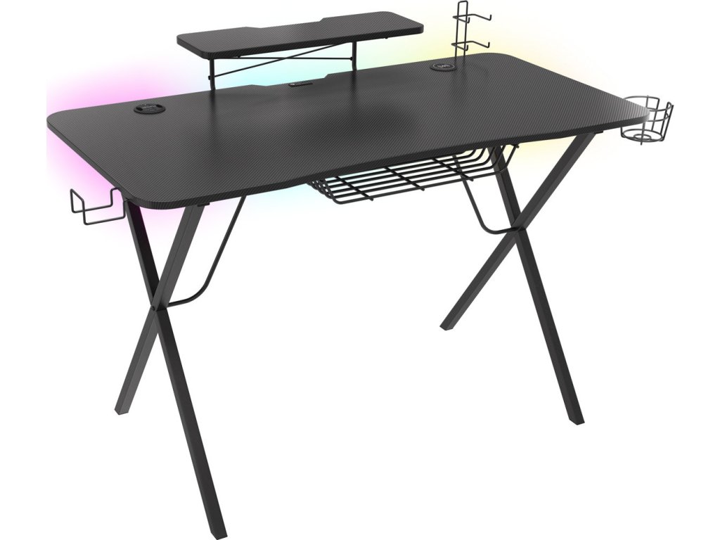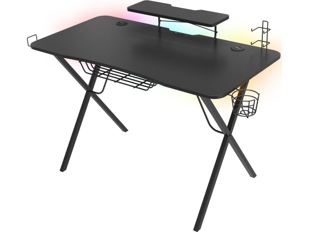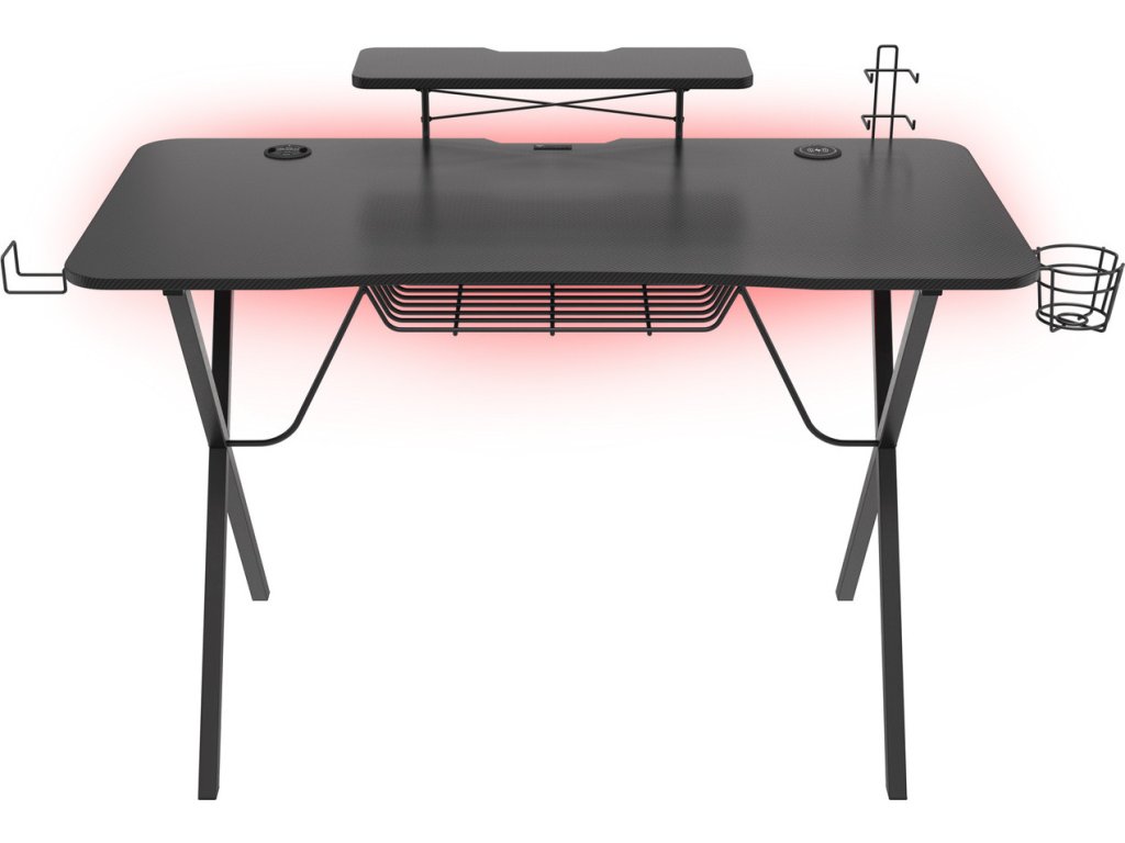 Genesis Holm 300 RGB - herní stůl s RGB podsvícením, 3xUSB 3.0, bezdrátová nabíječka mobilů