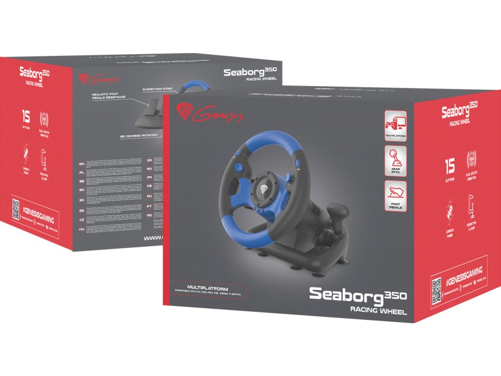 Genesis Seaborg 350 je multiplatformní herní volant s celkovým rozsahem natočení o 180°, který díky vibrační odezvě "Force feedback" umožňuje přežít realistickou jízdu ve virtuálním světě akčních her. Kvalitní zpracování a funkčnost Seaborg 350 uspokojí i ty nejnáročnější fanoušky automobilových závodů.