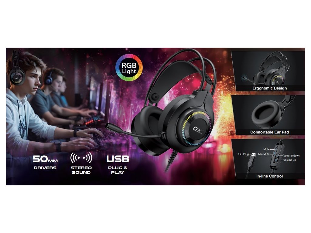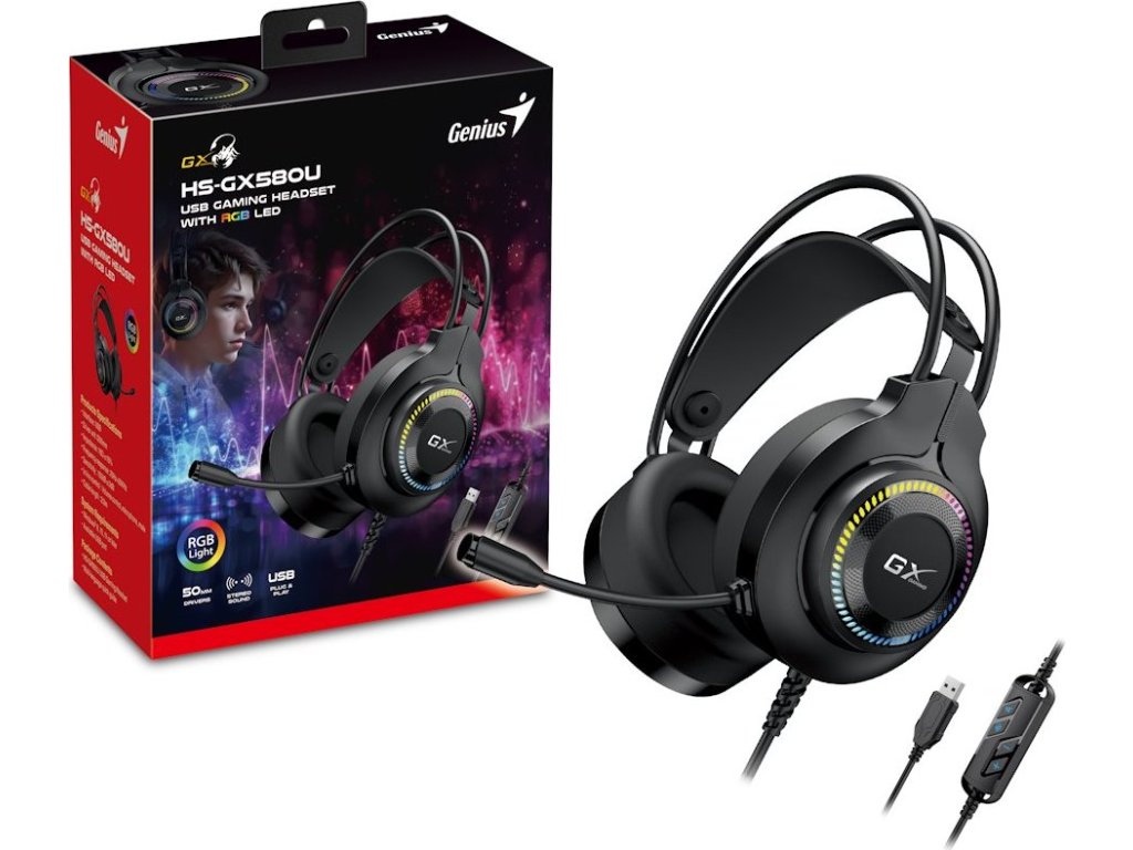 GENIUS GX GAMING headset - HS-GX580U/ USB/ RGB LED/ ovládání hlasitosti