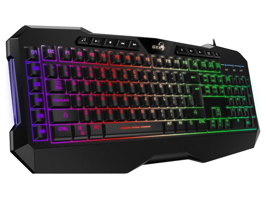 Genius GX GAMING Scorpion K11 ProŠpičková herní klávesnice nabízí 6 programovatelných makro tlačítek a LED podsvícení v sedmi různých barvách. Samozřejmostí je funkce Anti-ghosting pro 19 kláves, která umožňuje jejich současné stisknutí bez omezení funkčnosti. K dispozici je také 10 multimediálních kláves pro ovládání hudebního přehrávače, nastavení hlasitosti či spuštění kancelářských aplikací. Připojení lze jednoduše realizovat skrze 1,8 m dlouhý USB kabel.
