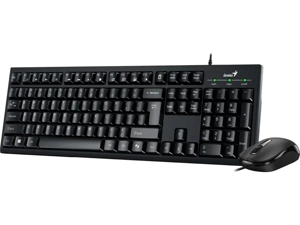 Genius KM-100SEKvalitní set klávesnice a myši pokryje všechny vaše základní kancelářské potřeby. Klávesnice disponuje klávesou pro vyvolání AI asistenta Microsoft Copilot v systému Windows a řadou programovatelných funkčních kláves, které lze využít pro snadnější ovládání hudebního přehrávače, sociálních sítí či kancelářských programů. Klávesnice je odolná proti polití, takže zůstane funkční i v případě nečekané nehody. Myš je vybavena optickým senzorem s rozlišením snímače 1200 DPI, které zaručí hladké a přesné ovládání.