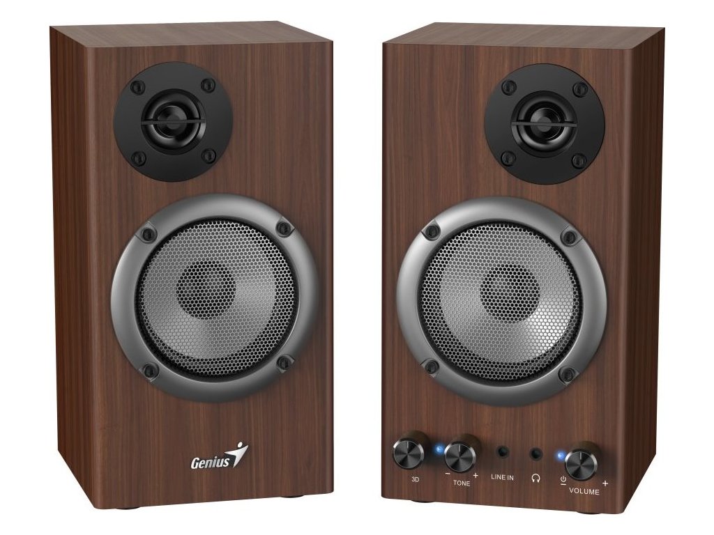 Genius SP-HF 500BSada reproduktorů s 3D prostorovým efektem v konfiguraci 2.0 s celkovým výkonem 16 W. Vyrobeny jsou ze dřeva pro docílení toho nejlepšího zvuku s plnými basy i zřetelnými výškami. Připojení k počítači, notebooku či chytrému telefonu lze jednoduše realizovat skrze 3,5mm konektor. K dispozici je také sluchátkový výstup a AUX vstup na přední straně. Potěší i ovládání hlasitosti a tónů přímo na reproduktoru.