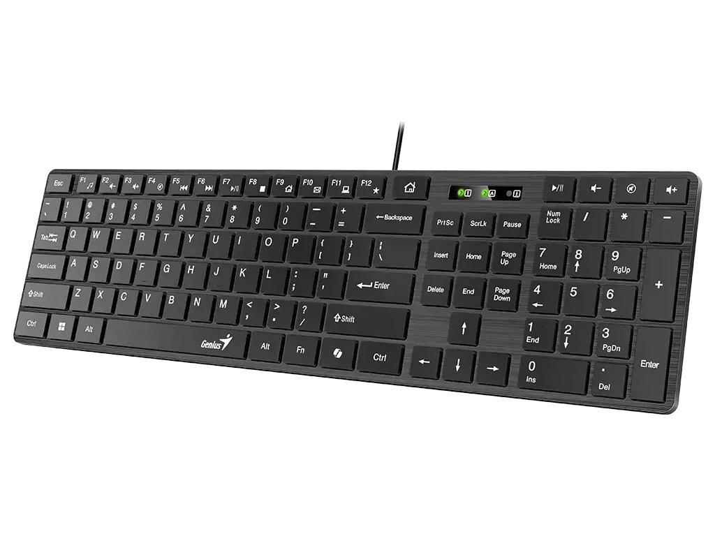 Genius Slimstar 126Elegantní drátová klávesnice v bílém provedení disponuje tenkým profilem a komfortním jemným sklonem. Díky tomu poskytuje uživateli maximální pohodlí při každodenní práci. Předností jsou také multimediální klávesy pro ztlumení zvuku, otevření e-mailu apod. Je vybavena samostatnou klávesou pro vyvolání AI asistenta Microsoft Copilot v systému Windows. Připojení k počítači je realizováno skrze USB port.
