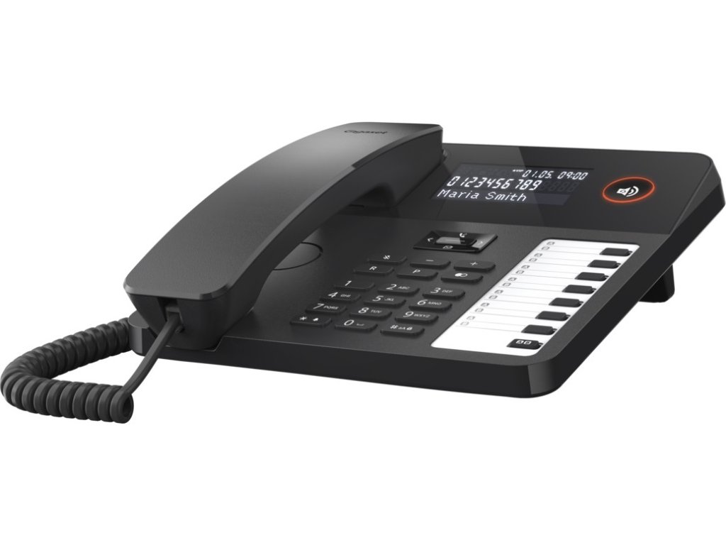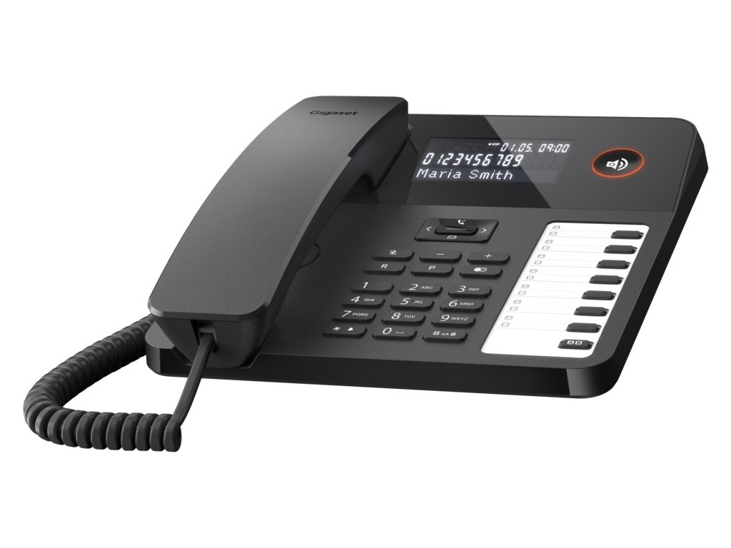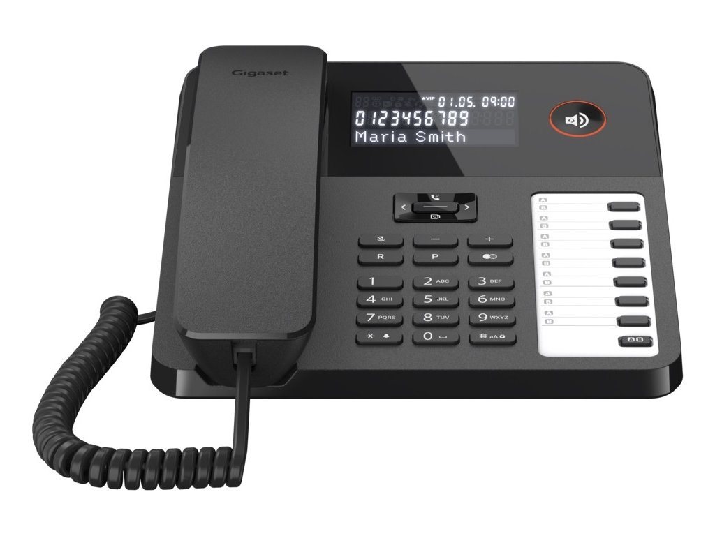 Šňůrový telefon Gigaset DESK 600 s LCD displejem a sedmi klávesami přímé volby, každou se dvěma