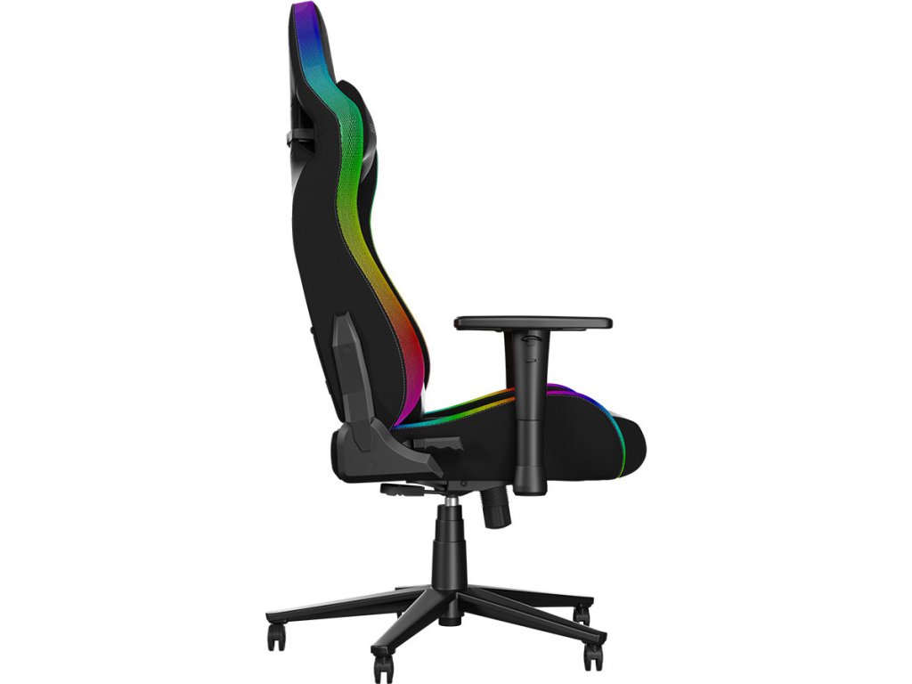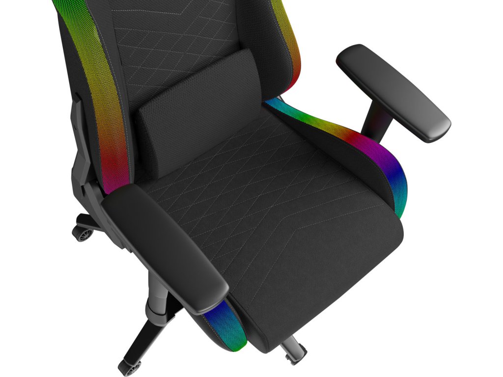 - Ergonomická herní židle s dálkově ovládaným RGB podsvícením s mnoha efekty a režimy umožňujícími nastavení rychlosti a jasu.