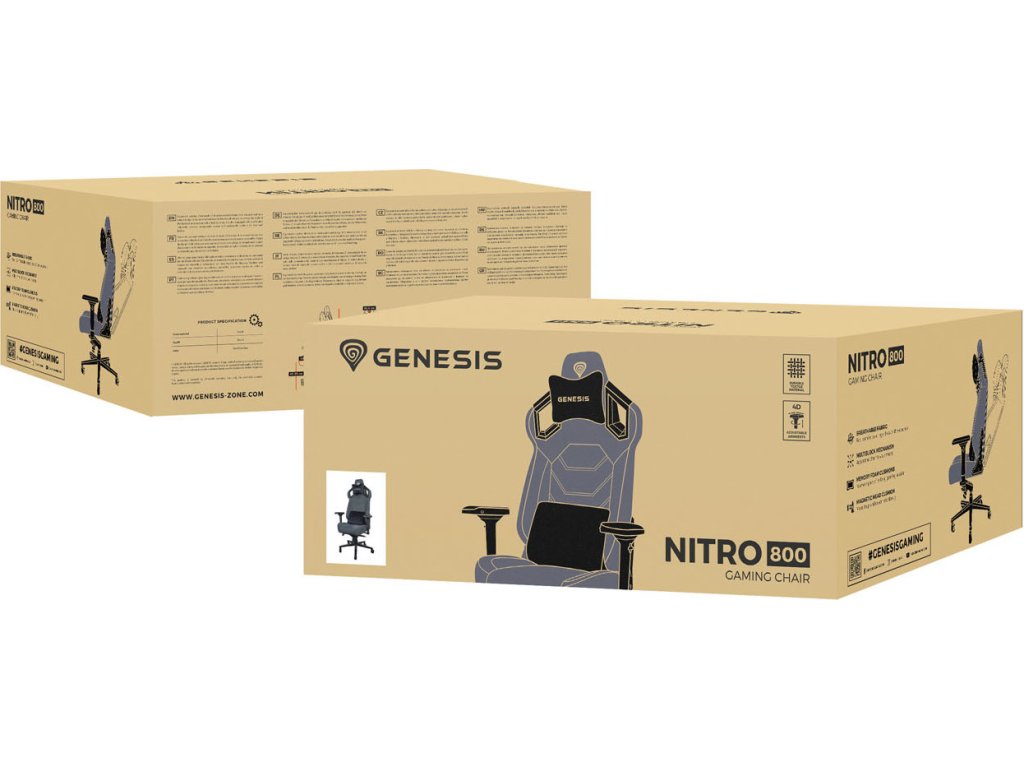 GENESIS Nitro 800 je židle určená pro hráče, kteří si potřebují plně přizpůsobit židli pro maximální pohodlí a oporu zad. Díky použití moderních materiálů nejvyšší kvality se jedná o výrobek, který kombinuje pohodlí s v tomto cenovém segmentu nesrovnatelnou odolností a zároveň nabízí vynikající oporu těla i během mnohahodinových potyček ve vašich oblíbených hrách.
