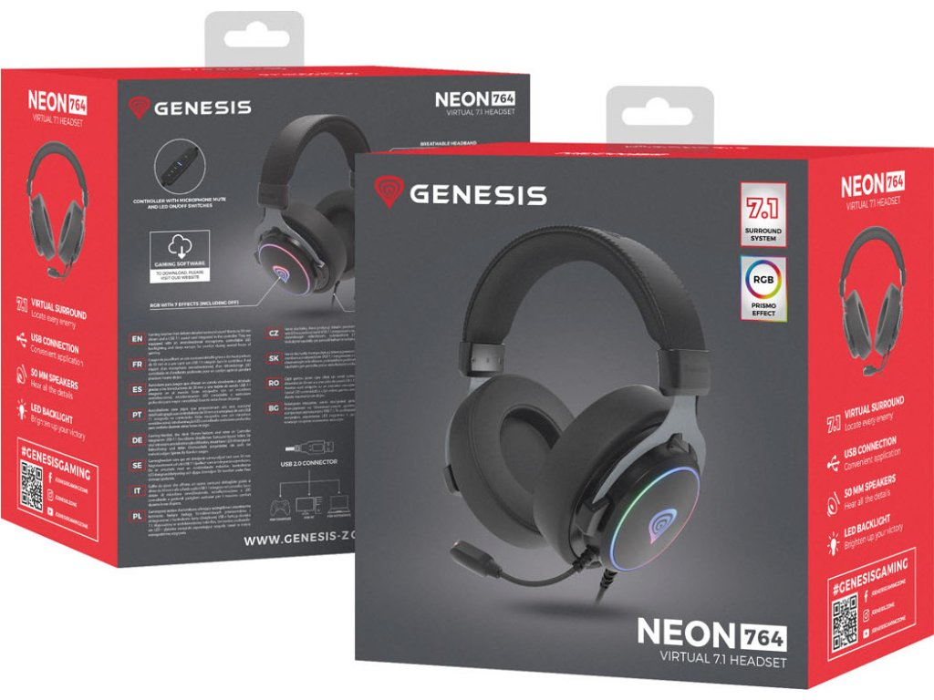 Jsou tak pohodlné, že možná zapomenete, že je vůbec máte na hlavě. GENES Neon 764 nabízí osvědčená řešení a materiály, které vám zpříjemní hodiny hraní. Velké a měkké náušníky, na dotek příjemná tkanina umístěná na vnitřní straně čelenky a stupňovité nastavení. Pohodlná a odolná - taková jsou sluchátka GENESIS Neon 764.