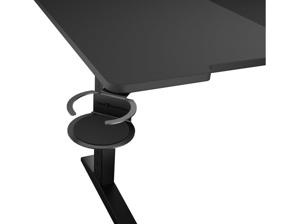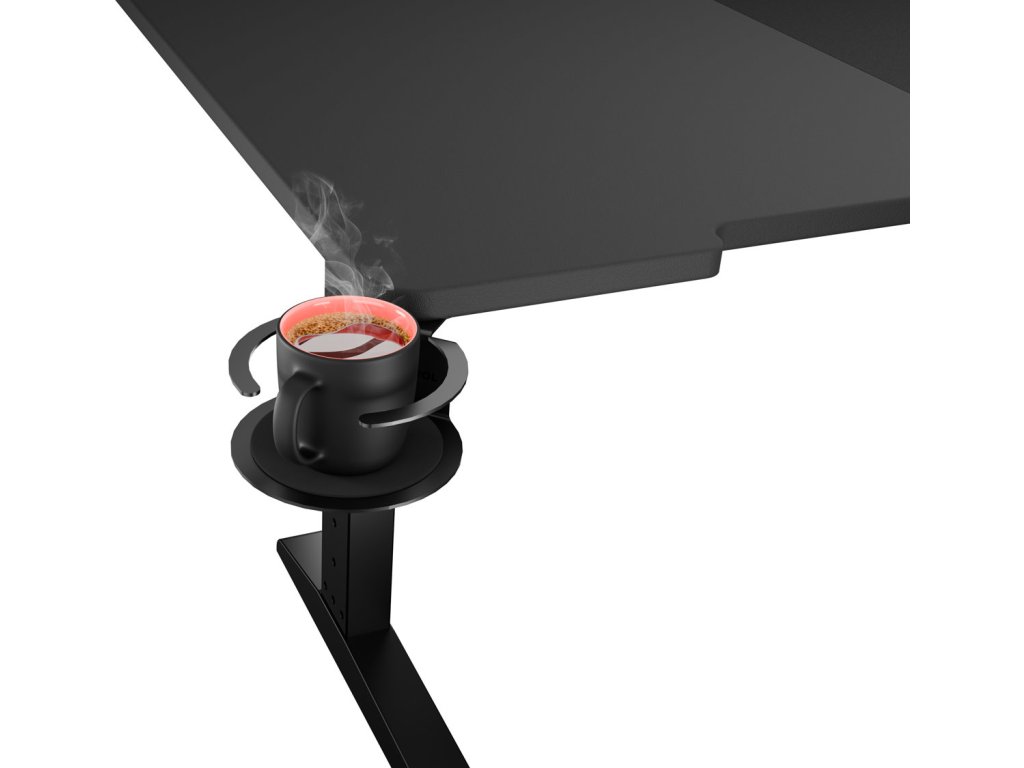- Je vybaven skládacími držáky na šálky a sluchátka, které lze bez demontáže skrýt pod stůl.