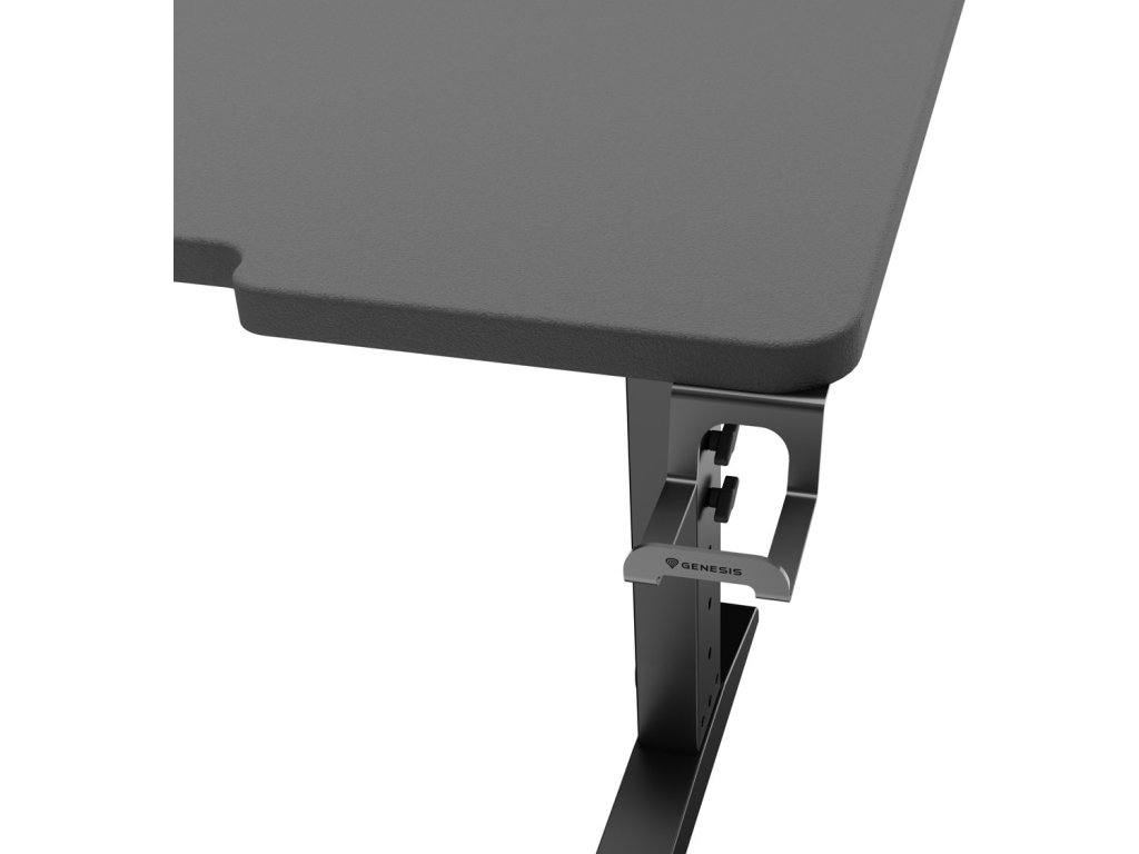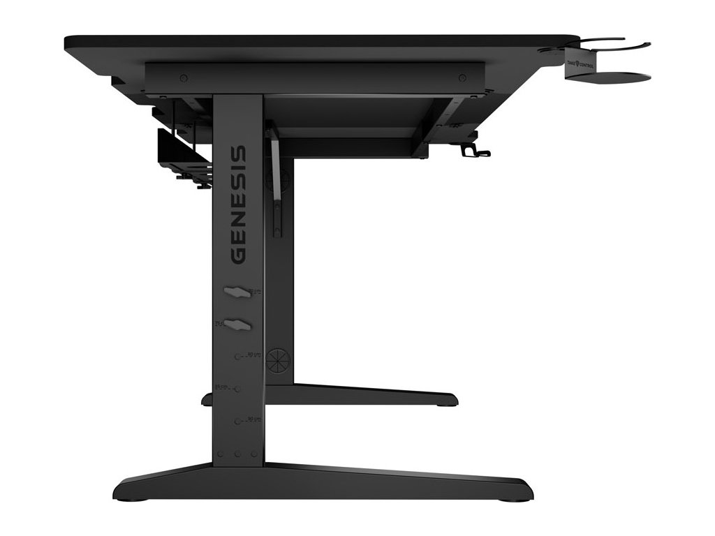 Nemusíte se obávat ani jeho výšky. Již ve fázi montáže si můžete vybrat z 5 úrovní, čímž určíte polohu stolové desky v rozmezí 70 až 90 cm. Můžete si ji tak snadno přizpůsobit své výšce, díky čemuž je stůl GENESIS Holm Modular plně ergonomický. Nastavitelná je také speciální police na kabely. Můžete ji prodloužit v rozmezí 50 až 95 cm, a přizpůsobit ji tak rozměrům celé stolové desky. Díky její hloubce se do ní snadno vejdou i velké přepěťové lišty.
