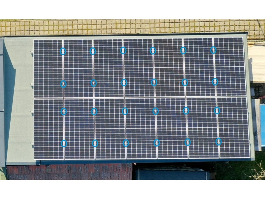 Středové uchycení má za úkol připevnit dva solární panely vedle sebe k hliníkovým profilům. Obvykle se používají dva úchytové body na levé a pravé straně každého panelu, s výjimkou posledního panelu v řadě, který má na krajní straně jiné uchycení. Středové uchycení je vyrobeno z hliníku, má rozměry 40 x 27 x 70 mm (šířka, výška, délka), matně stříbrnou barvu, otvor na spodní straně má průměr 9 mm.