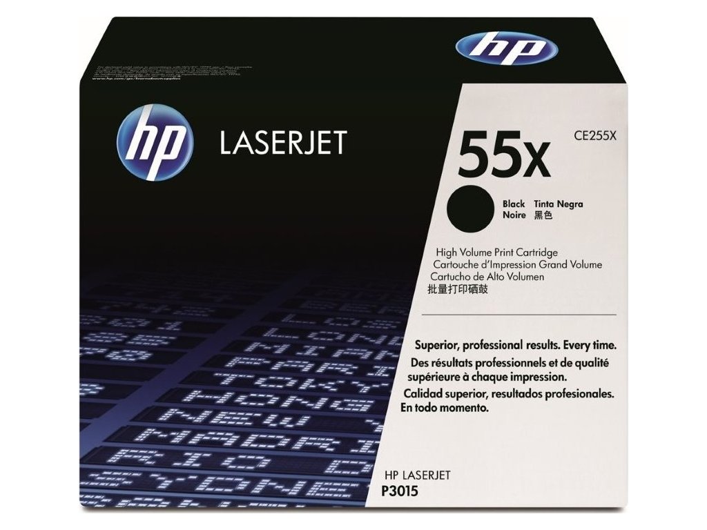 Průměrná výtěžnost černých tiskových kazet HP LaserJet CE255X je 12 500 standardních stran, což je činí ideálními pro prostředí s vysokými objemy tisku [k1]. Vysokokapacitní originální tiskové kazety HP šetří váš čas i peníze.• Zvyšte efektivitu své kanceláře díky bezproblémovému tisku s originálními materiály HP. Speciálně připravený toner HP poskytuje kvalitu a spolehlivost, kterou vyžaduje každá společnost. Díky časově úsporné správě spotřebního materiálu je tisk produktivní a ekonomický.• S originálními kazetami HP a tonerem HP s jedinečným složením získáte konzistentní kvalitu tisku po celou dobu životnosti kazety. Jelikož 70 % tiskového procesu závisí na kazetě, zvolte si kazetu navrženou přímo pro vaši tiskárnu.