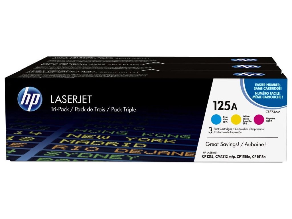 Tonerové kazety HP 125A LaserJet umožňují tisk více stránek a úsporu více peněz, aniž ty to ohrozilo spolehlivý a bezproblémový tisk s originálními produkty HP. Trojbalení – určená pro vysokoobjemový podnikový tisk fotografické kvality – představují pohodlnou a cennou možnost.