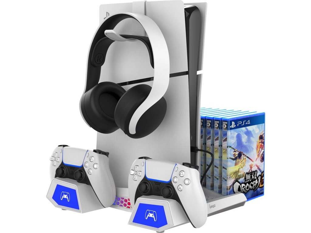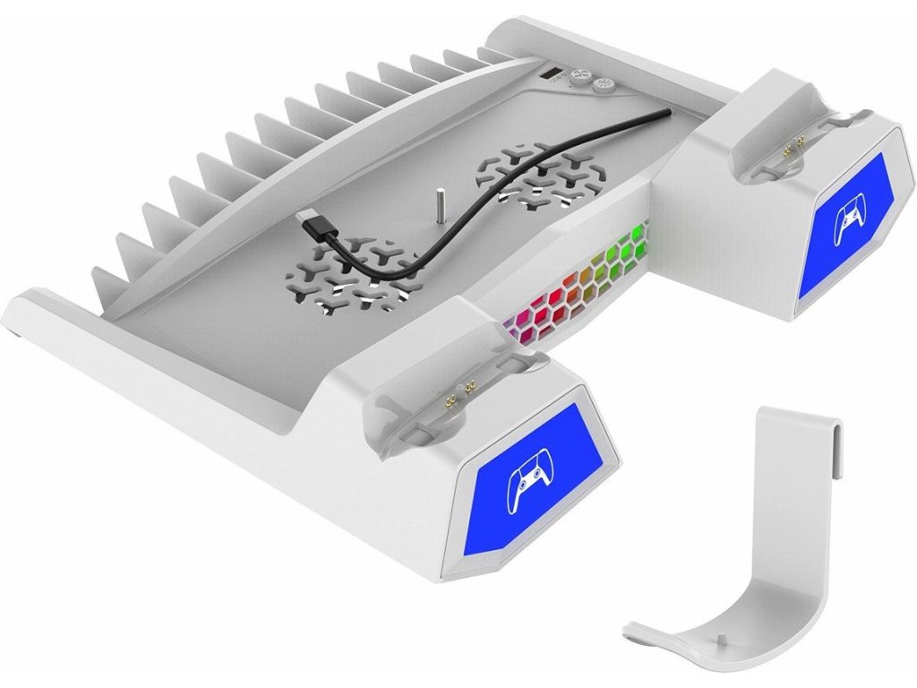 iPega P5S023 Multifunkční Nabíjecí RGB Stojan s Chlazením pro PS5/PS5 Slim White