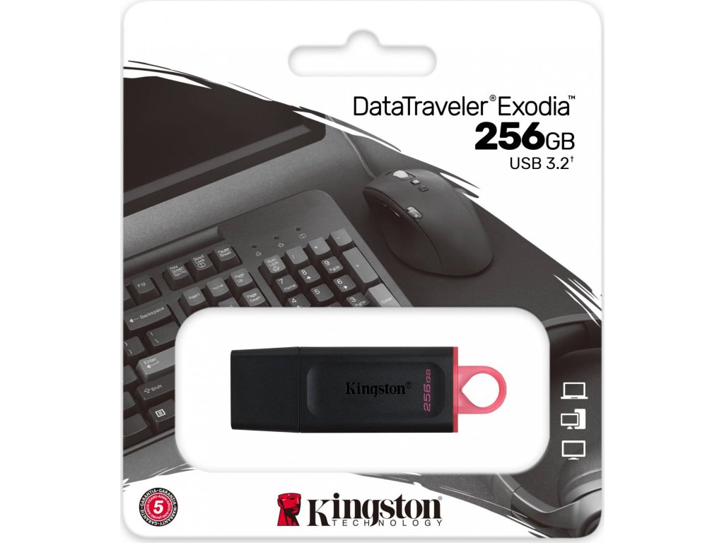 Kingston DataTraveler Exodia podporuje rozhraní USB 3.2 Gen 1 pro snadný přístup k notebookům, stolním počítačům, monitorům a dalším digitálním zařízením.