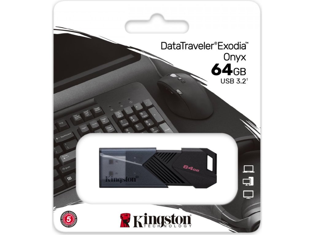 Kingston DataTraveler Exodia Onyx 64 GBPraktický flashdisk s kapacitou 64 GB a posuvnou krytkou nabízí vynikající přenosovou rychlost díky rozhraní USB 3.2 Gen 1. Umožňuje rychlé přenosy pro jednoduché a snadné ukládání. Disk DT Exodia Onyx v provedení s elegantním, matně černým pouzdrem představuje dokonalé a cenově dostupné stylové úložiště.