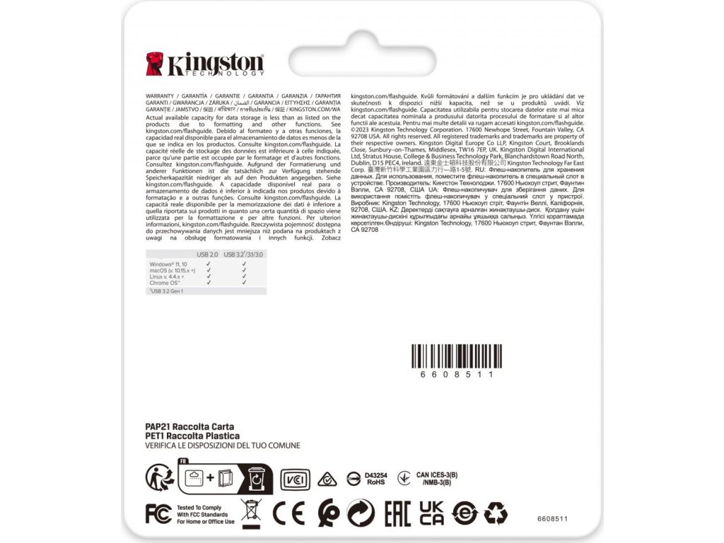 (B) Část z uvedené kapacity flash paměťového zařízení je využita pro formátování a další funkce, a proto není k dispozici pro ukládání dat. Jako taková je skutečná dostupná kapacita pro ukládání dat menší, než je uvedeno na produktech. Další informace naleznete v Průvodci flash paměťovými zařízeními od společnosti Kingston.