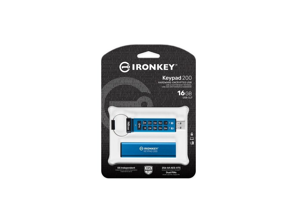 Řada Kingston IronKey™ Keypad 200 jsou na operačním systému nezávislé, hardwarově šifrované disky s rozhraním USB typu A a USB Type-C®* s alfanumerickou klávesnicí pro snadný přístup pomocí PIN kódu.