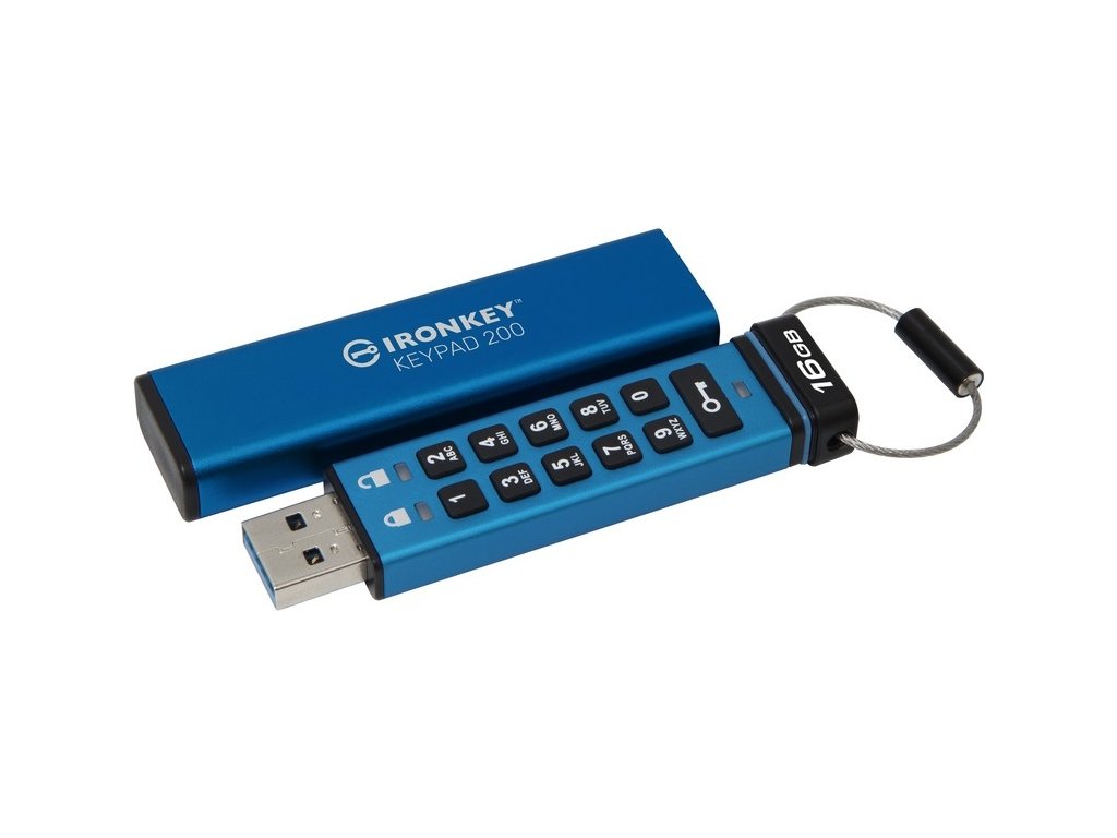 Kingston IronKey Keypad 200/16GB/USB 3.2/USB-A/Modrá