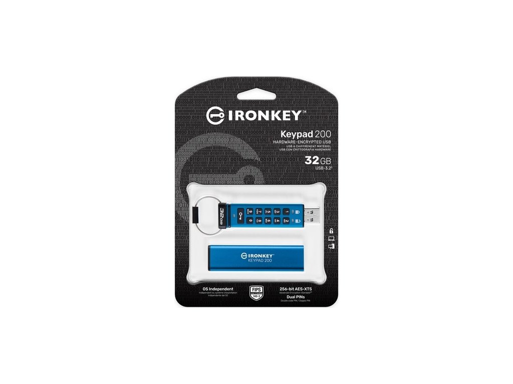 Kingston IronKey Keypad 200/32GB/USB 3.2/USB-A/Modrá