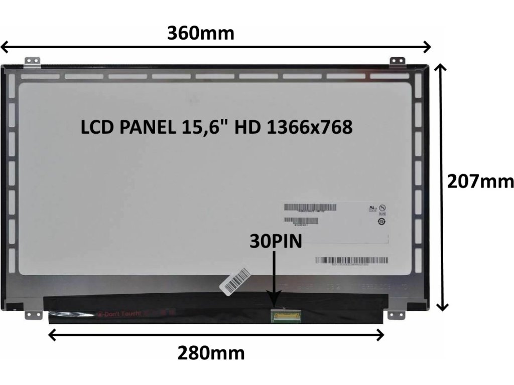 LCD PANEL 15,6" HD 1366x768 30PIN MATNÝ / ÚCHYTY NAHOŘE A DOLE