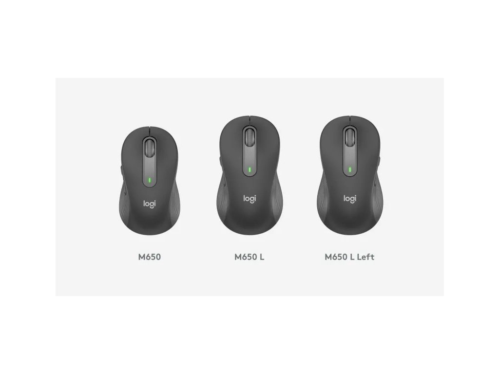 Vyberte si myš Signature M650, která vám bude nejlépe vyhovovat. Model M650 doporučujeme pro malé až střední ruce, model M650 L pro velké ruce a model M650 L Left pro leváky. Nejste si jisti, která myš je pro vás nejvhodnější? Viz obrázek a rozměry.