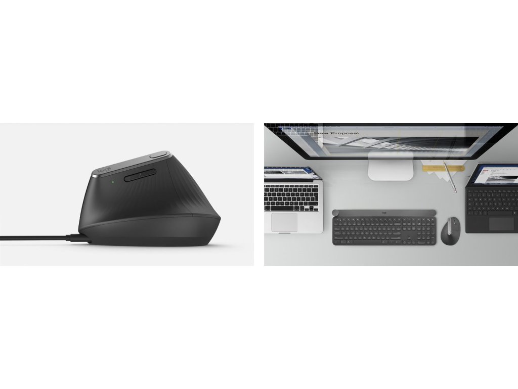 Logitech MX/Vertikální/Optická/Pro praváky/4 000 DPI/Drátová+bezdrátová/Černá