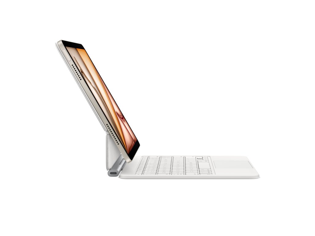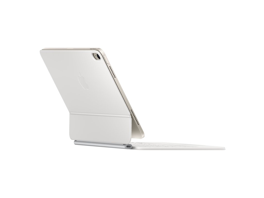 Magic Keyboard je ideální doplněk k iPadu Air. Má elegantní a přenosný design a je na něm radost psát i používat trackpad na přesné ovládání. Nechybí mu řádek 14 funkčních kláves ani USB-C konektor na průchozí nabíjení. Navíc chrání iPad zepředu i zezadu. Plovoucí konzolová konstrukce se dá plynule přizpůsobit do různých pozorovacích úhlů a velký skleněný trackpad rozšiřuje možnosti práce s iPadOS.