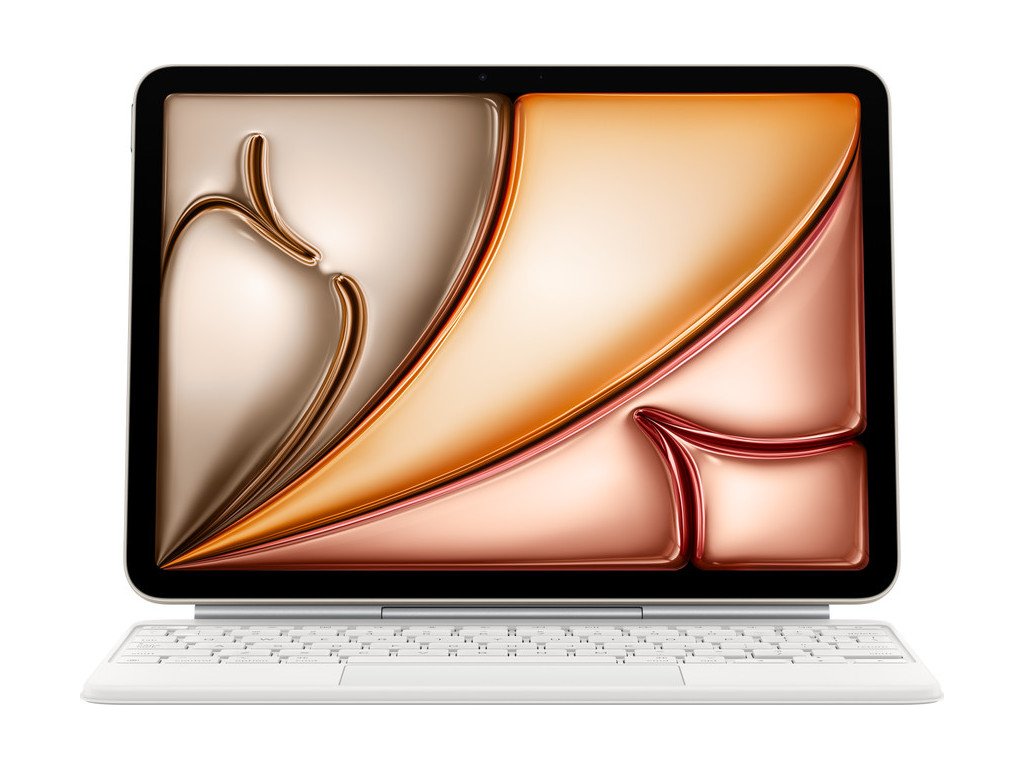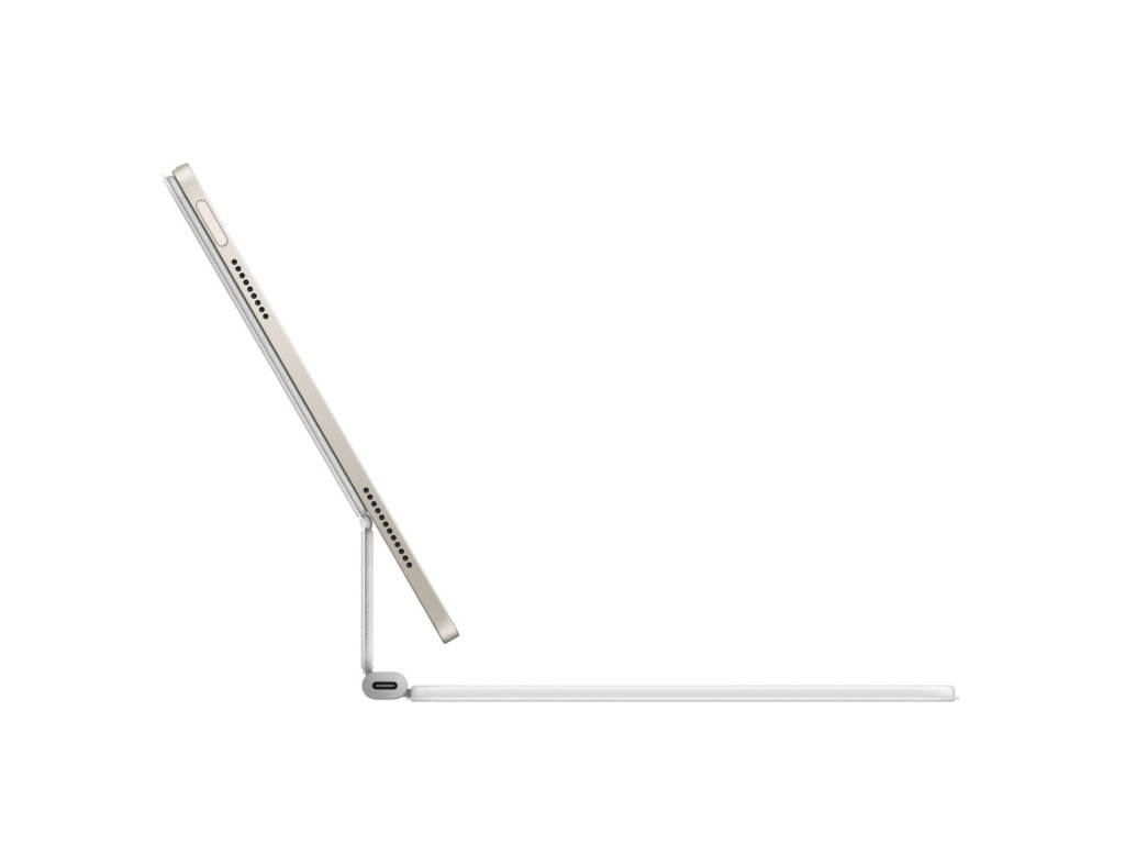 Magic Keyboard je ideální doplněk k iPadu Air. Má elegantní a přenosný design a je na něm radost psát i používat trackpad na přesné ovládání. Nechybí mu řádek 14 funkčních kláves ani USB-C konektor na průchozí nabíjení. Navíc chrání iPad zepředu i zezadu. Plovoucí konzolová konstrukce se dá plynule přizpůsobit do různých pozorovacích úhlů a velký skleněný trackpad rozšiřuje možnosti práce s iPadOS.
