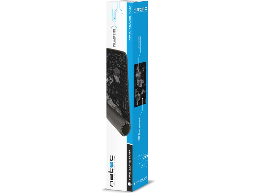 Natec Time Zone Map Maxi je unikátní podložka pod myš o maxi rozměrech 800x400 mm, na kterou se vejde nejen myš, ale i klávesnice, nebo notebook. Díky Maxi rozměrům chrání pracovní stůl před poškozením a její vysoce-kvalitní povrch a zpracování zvyšuje přesnost pohybů myši a snižuje tření mezi myší a povrchem, co ulehčuje pohyb.