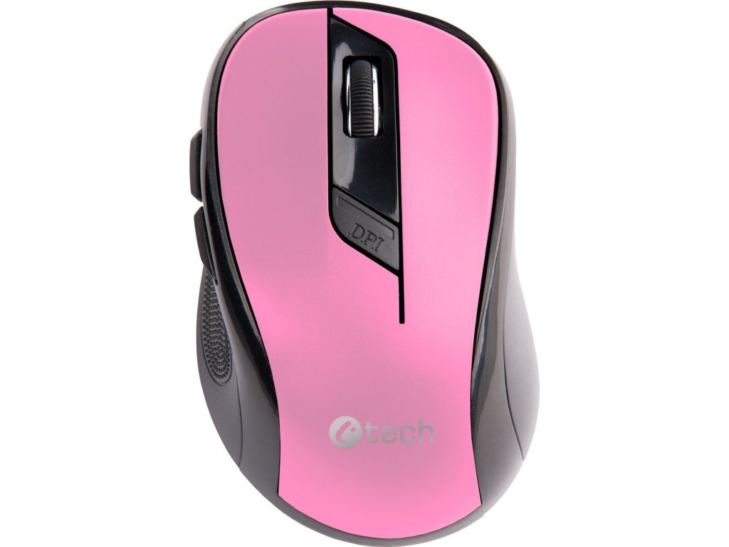 Myš C-TECH WLM-02P, černo-růžová, bezdrátová, 1600DPI, 6 tlačítek, USB nano receiver
