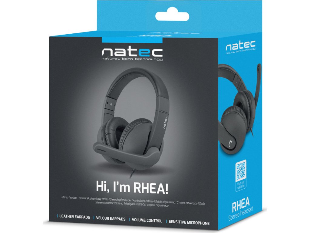 Sluchátka Natec RHEA mají moderní kovovou konstrukci kombinovanou s pohodlím měkkých náušníků potažených ekologickou kůží - díky tomu můžete náhlavní soupravu používat po mnoho hodin bez únavy, zatímco nylonová šňůra zajišťuje většé odolnost a delší životnost produktu.